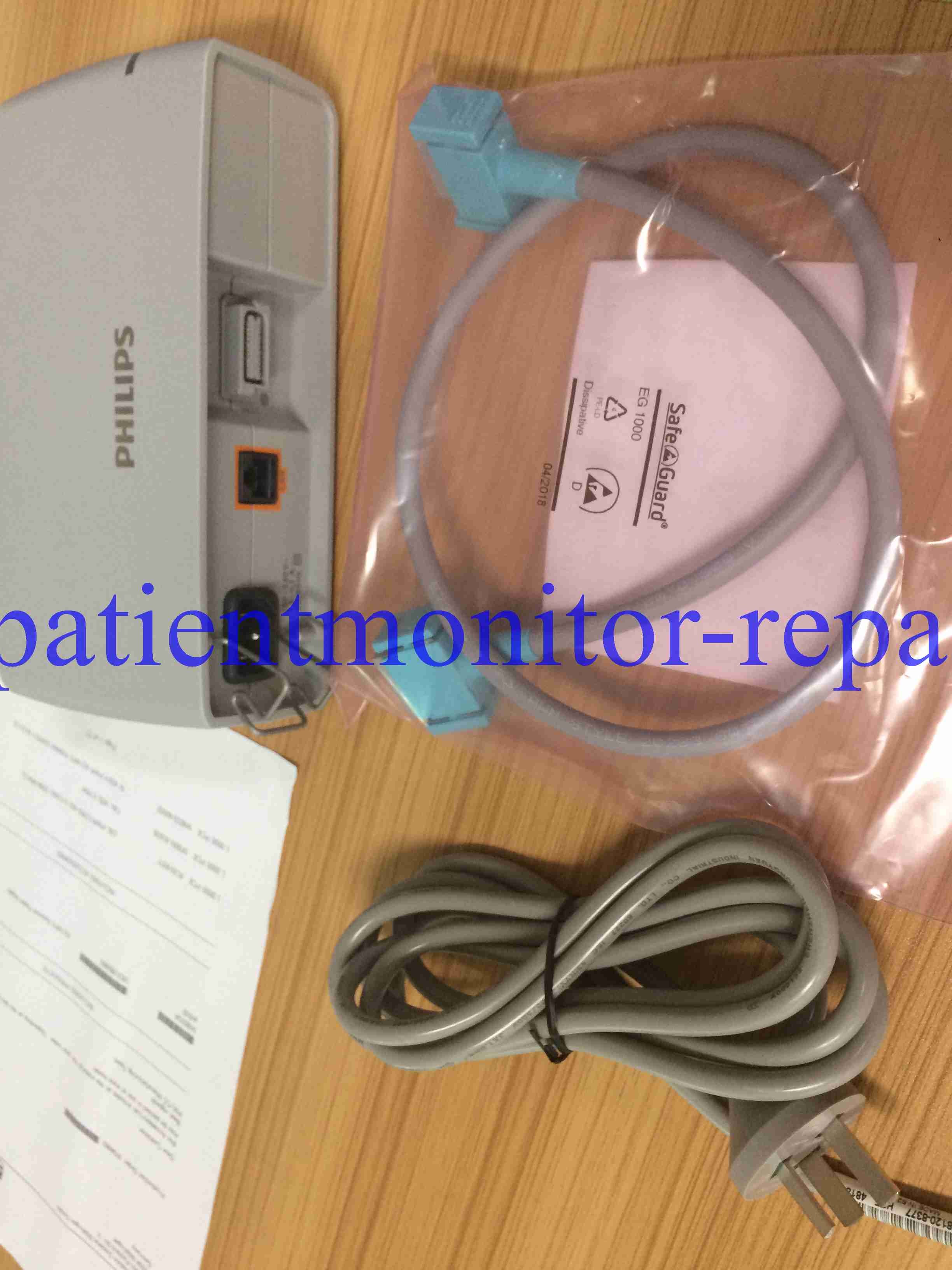 R: La fuente de alimentación del monitor del paciente está envasada en una caja de cartón para su envío.
